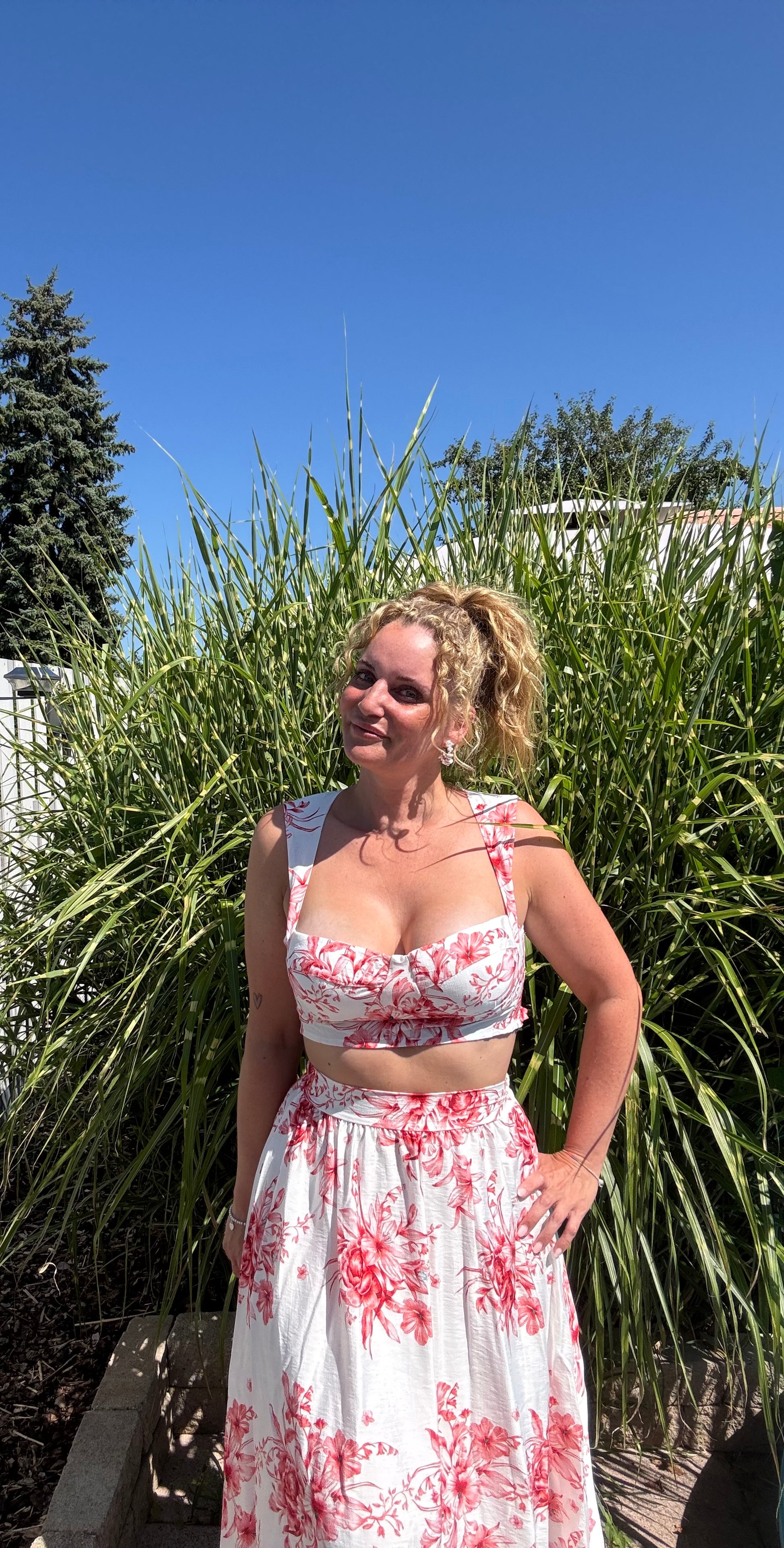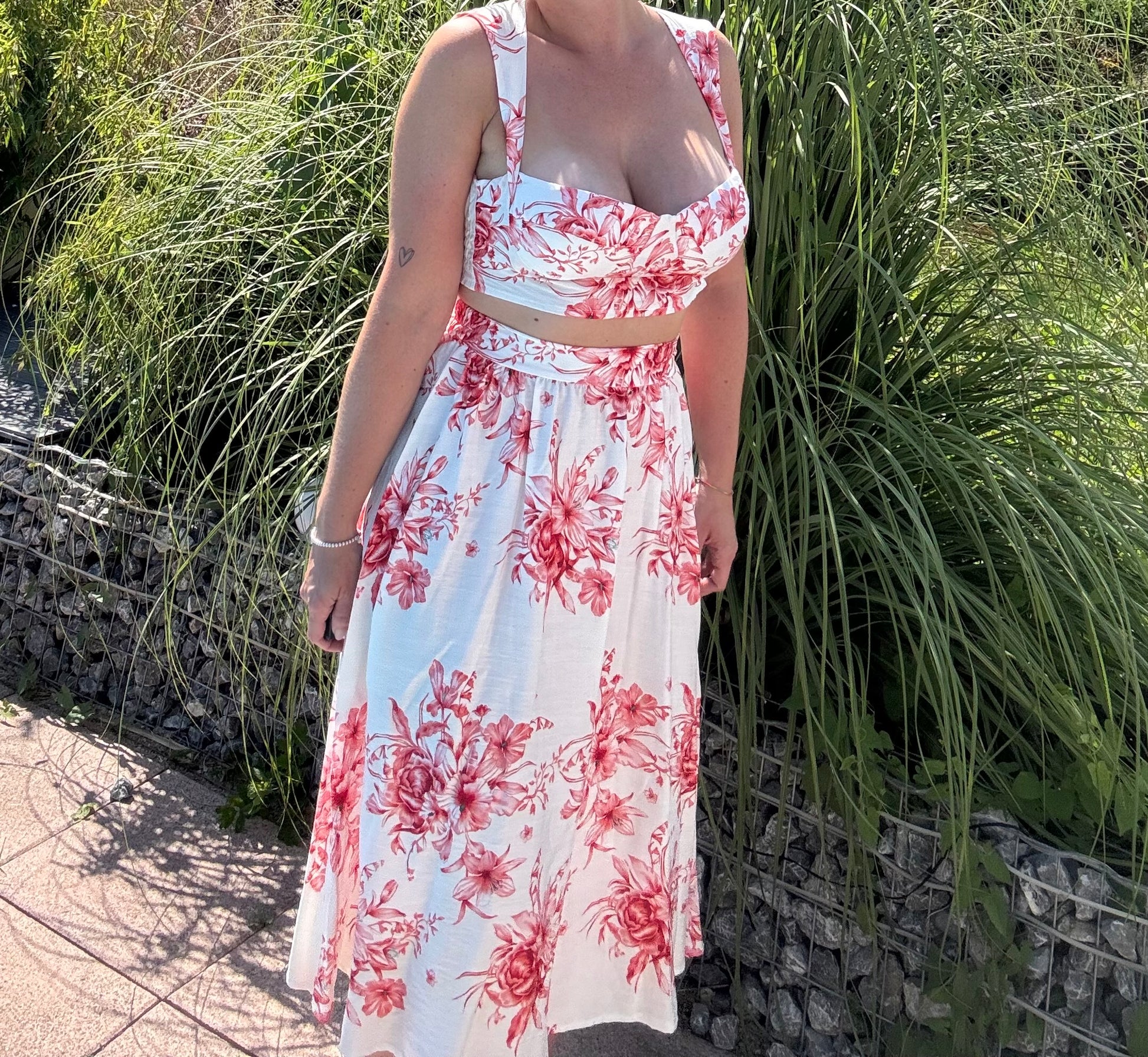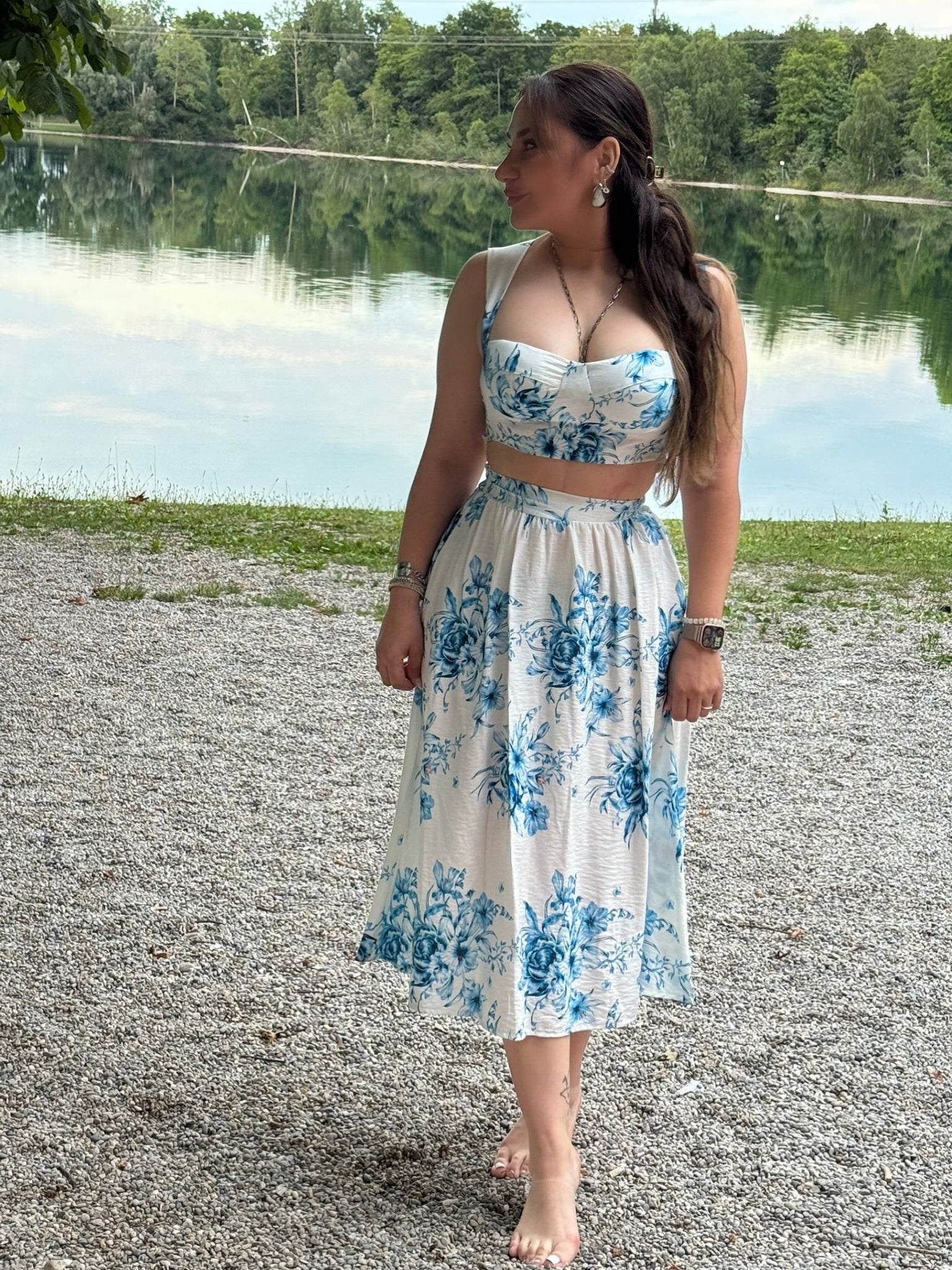Romantisch, verspielt und einfach hinreißend! Dieses zweiteilige Set mit Blumenprint ist wie gemacht für Sommerabende in Italien oder ein Picknick im Park.