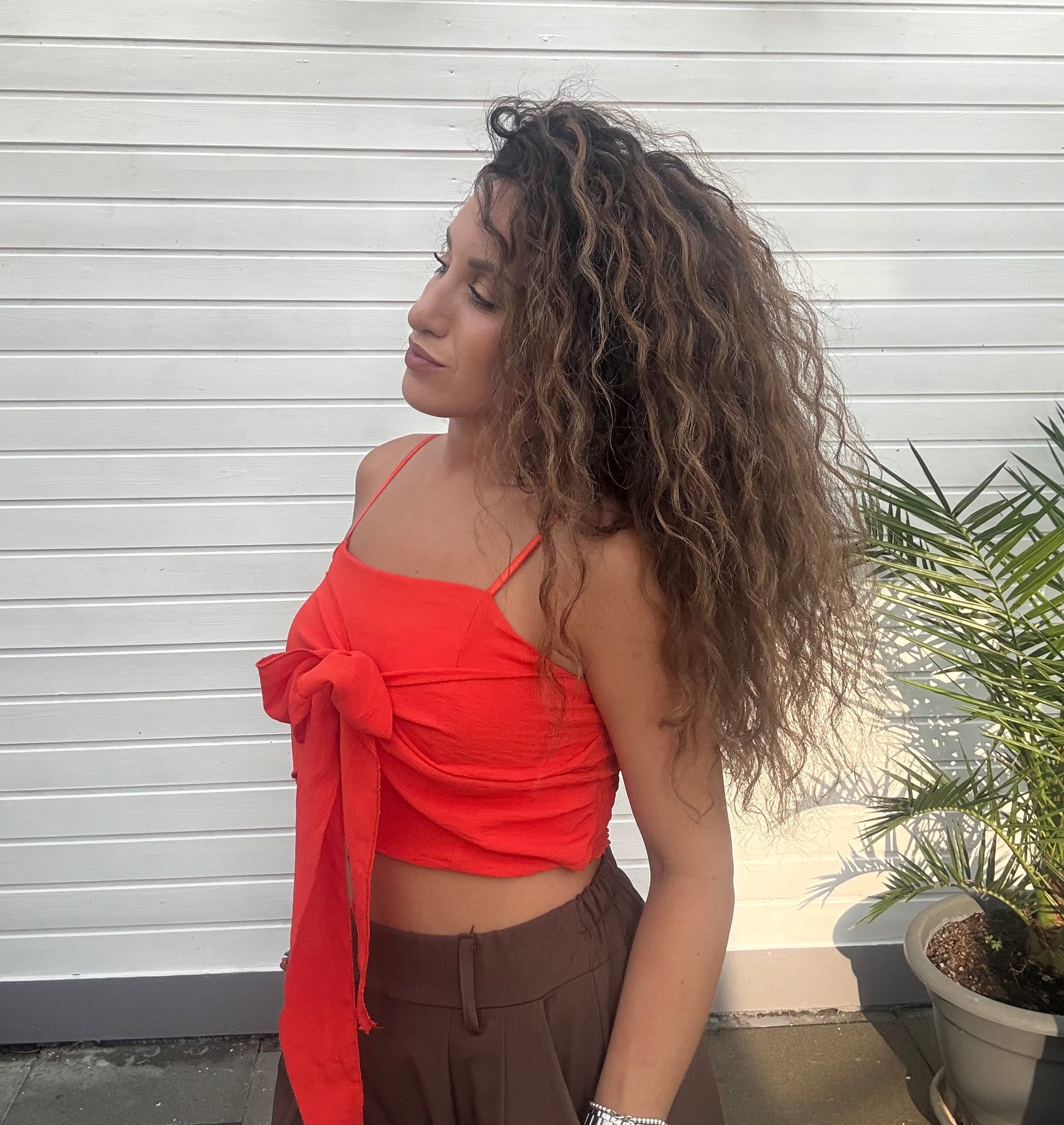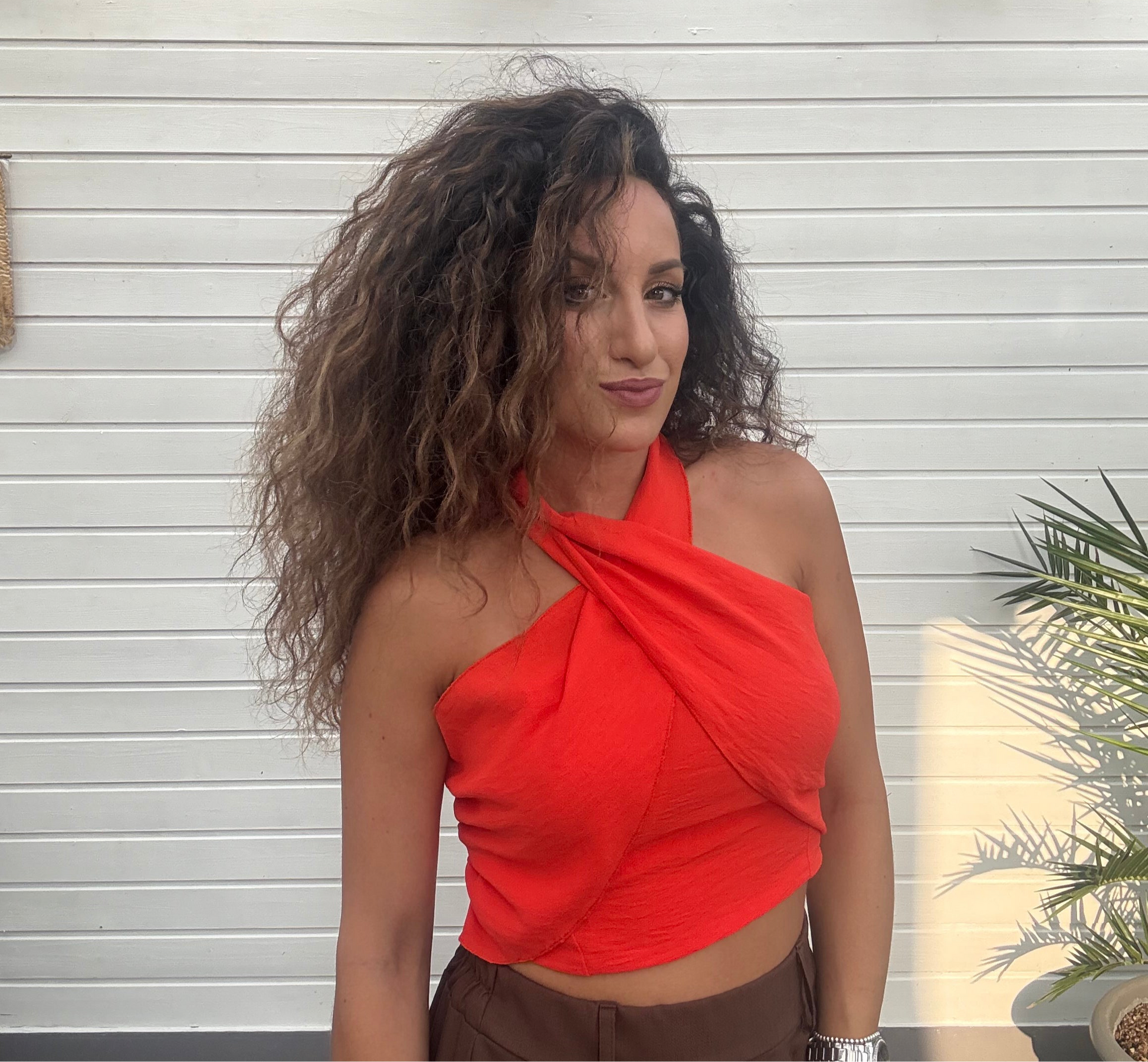 Ein Oberteil, viele Looks: Dieses korallfarbene Wickel-Top ist ein echtes Multitalent. Ob elegant über die Schulter gelegt, verspielt mit Schleife vorne gebunden oder individuell geknotet – mit diesem Teil kannst du deinen Style immer wieder neu erfinden. Perfekt für Sommer-Outfits, Urlaubsstyles oder besondere Anlässe.